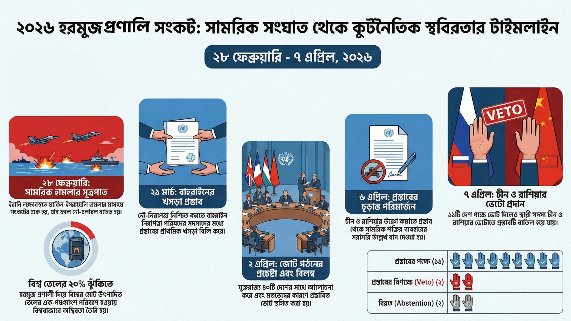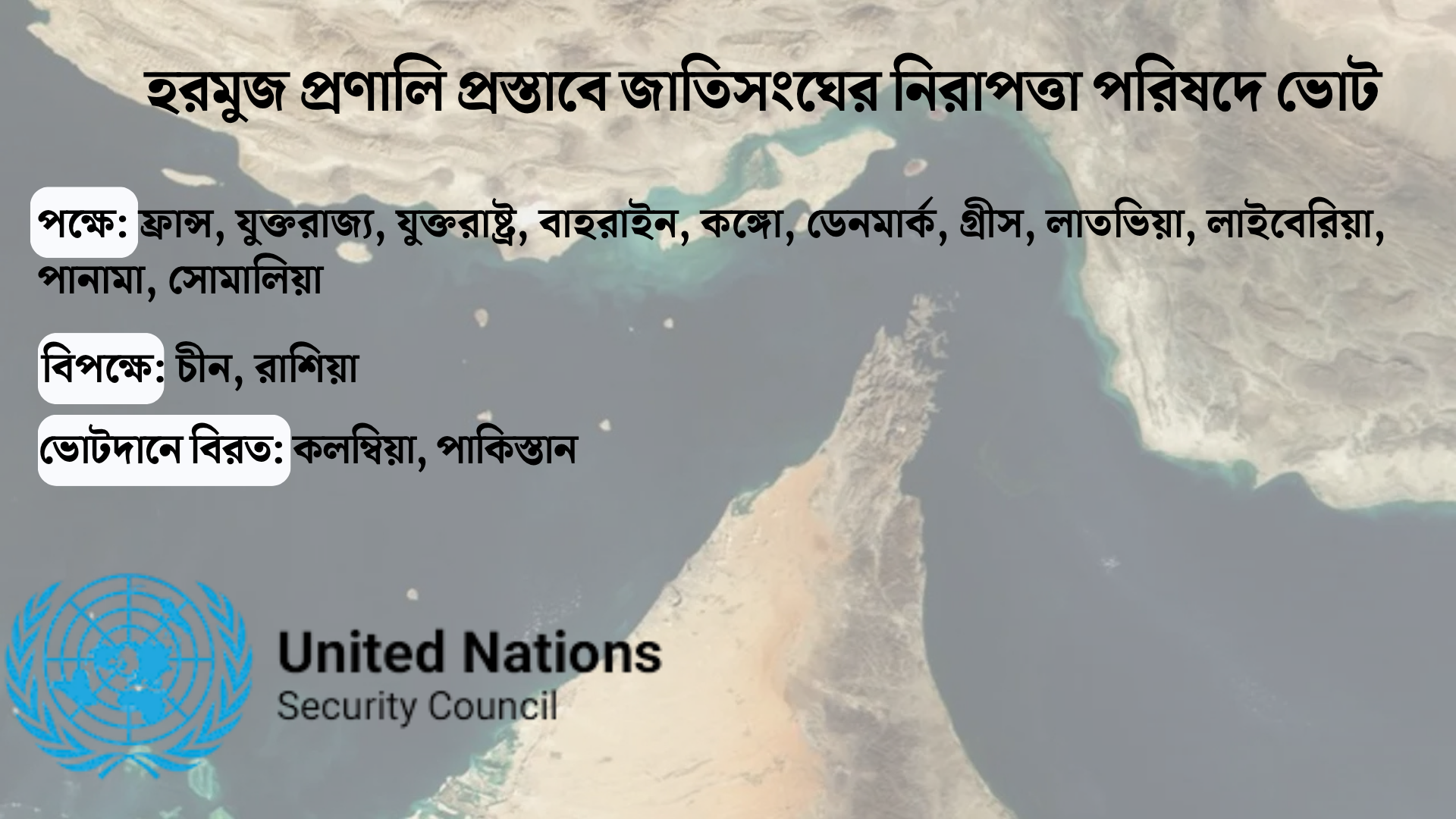 চীন ও রাশিয়ার এই ভেটো হরমুজ প্রণালিতে তাৎক্ষণিক সামরিক পদক্ষেপের আইনি পথ বন্ধ করেছে। তবে এটি মধ্যপ্রাচ্যের সংকটের কোনো স্থায়ী সমাধান দেয়নি।