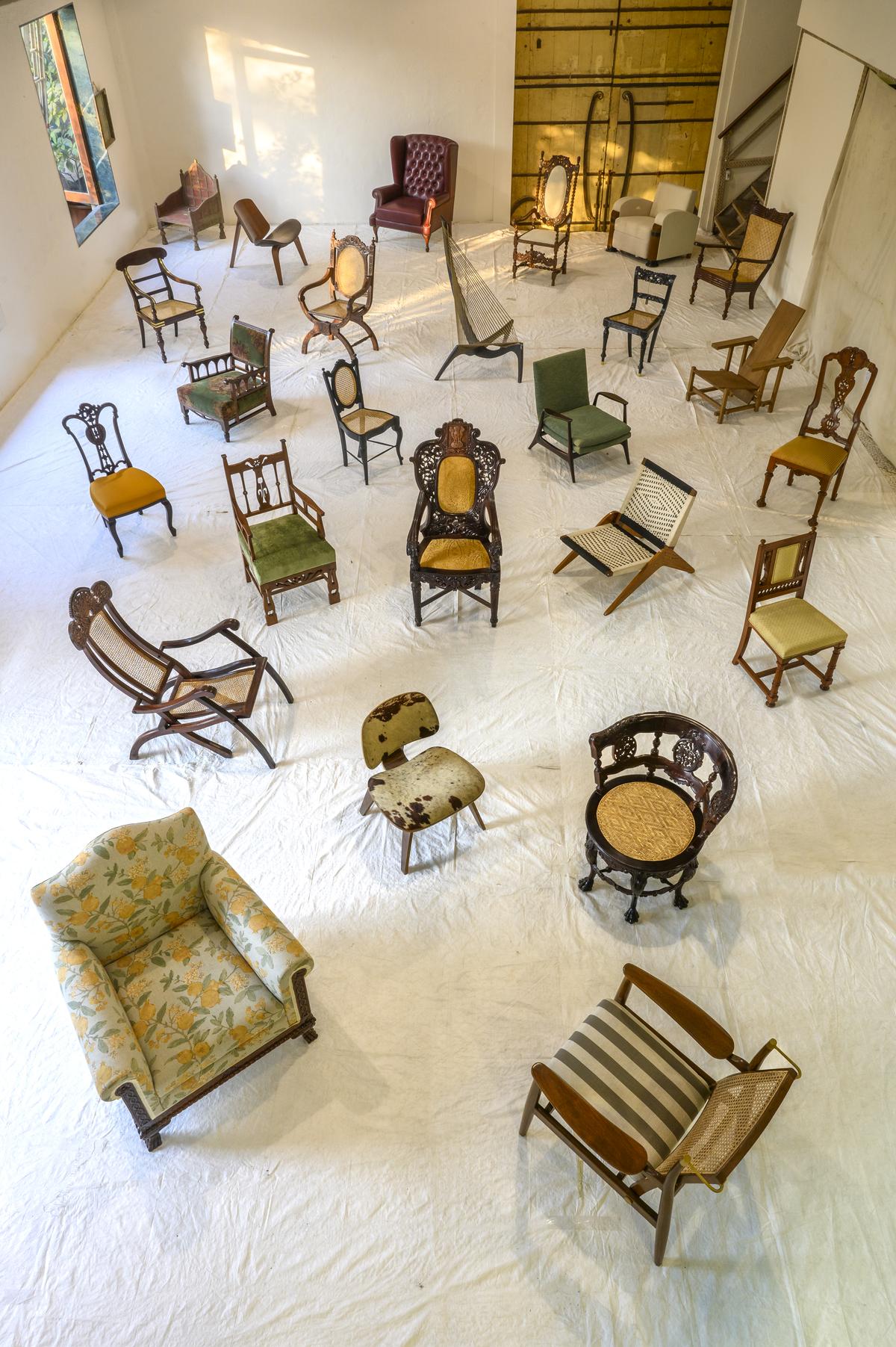 সংস্কারকারী প্রতিষ্ঠান হাউস অব মহেন্দ্র দোশি আয়োজিত এই প্রদর্শনীতে প্রদর্শিত চেয়াগুলো ভারতের বিভিন্ন প্রান্ত থেকে কয়েক দশক ধরে সংগ্রহ করেছেন ব্র্যান্ডটির অভিভাবক ও সংস্কার বিশেষজ্ঞ আনন্দ গান্ধী ও চিকি দোশি।