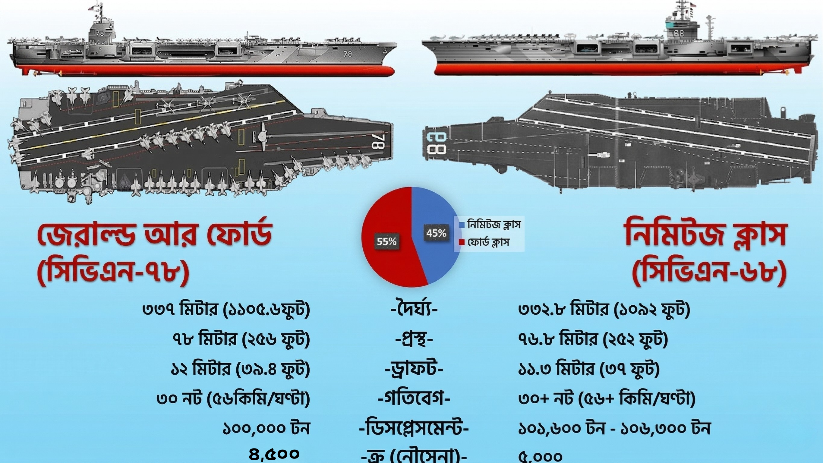 নিমিৎজ এবং ফোর্ডক্লাস এয়ারক্রাফট ক্যারিয়ারের পার্থক্য