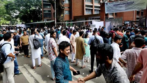 বহুল প্রতীক্ষিত ঢাকা বিশ্ববিদ্যালয় কেন্দ্রীয় ছাত্র সংসদ (ডাকসু) ও হল সংসদ নির্বাচনে উচ্ছ্বাস-আনন্দের সঙ্গে ভোট দিয়েছেন শিক্ষার্থীরা। মঙ্গলবার সকাল ৮টা থেকে বিকেল ৪টা পর্যন্ত আট কেন্দ্রের মোট ৮১০টি বুথে ভোটগ্রহণ হয়। ডাকসুর ২৮টি পদে প্রতিদ্বন্দ্বিতা করেন ৪৭১ জন প্রার্থী। সহ-সভাপতি (ভিপি) পদে প্রতিদ্বন্দ্বিতা করেন ৪৫ জন, সাধারণ সম্পাদক (জিএস) পদে ১৯ জন এবং সহ-সাধারণ সম্পাদক (এজিএস) পদে ২৫ জন। ছবি: প্রবীর দাশ/স্টার