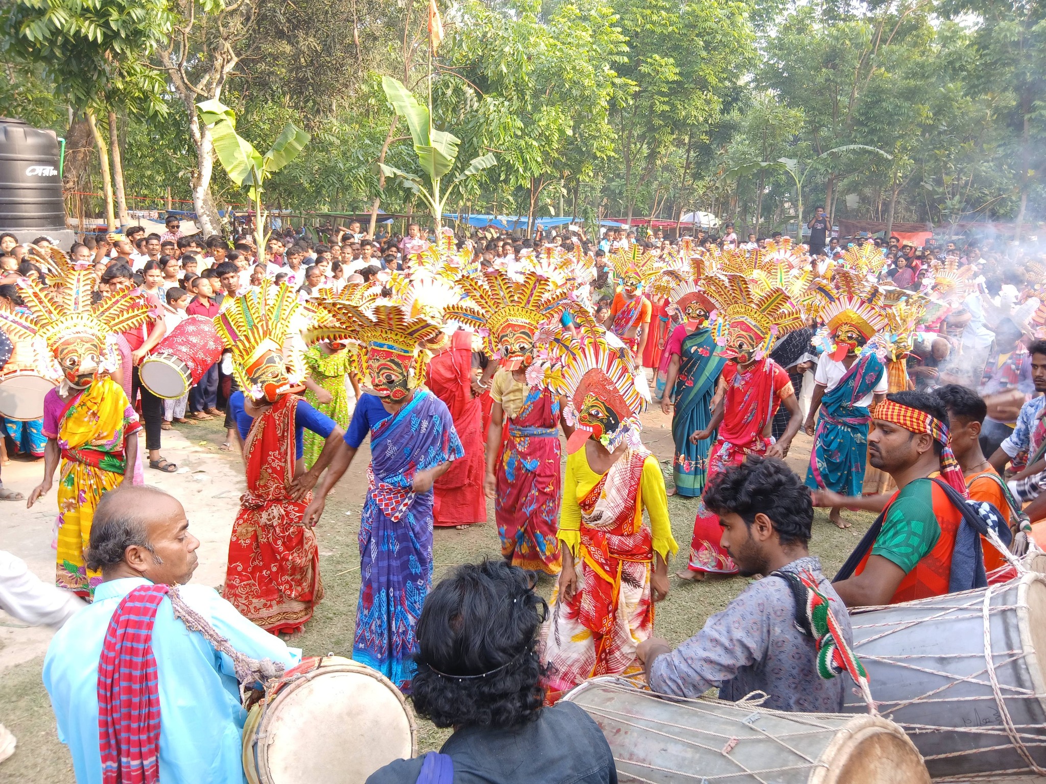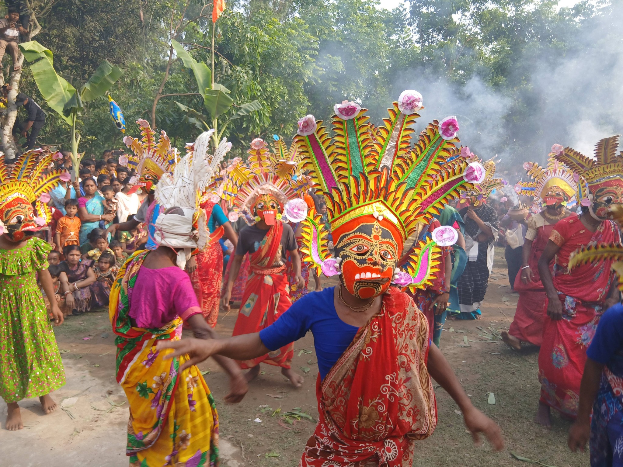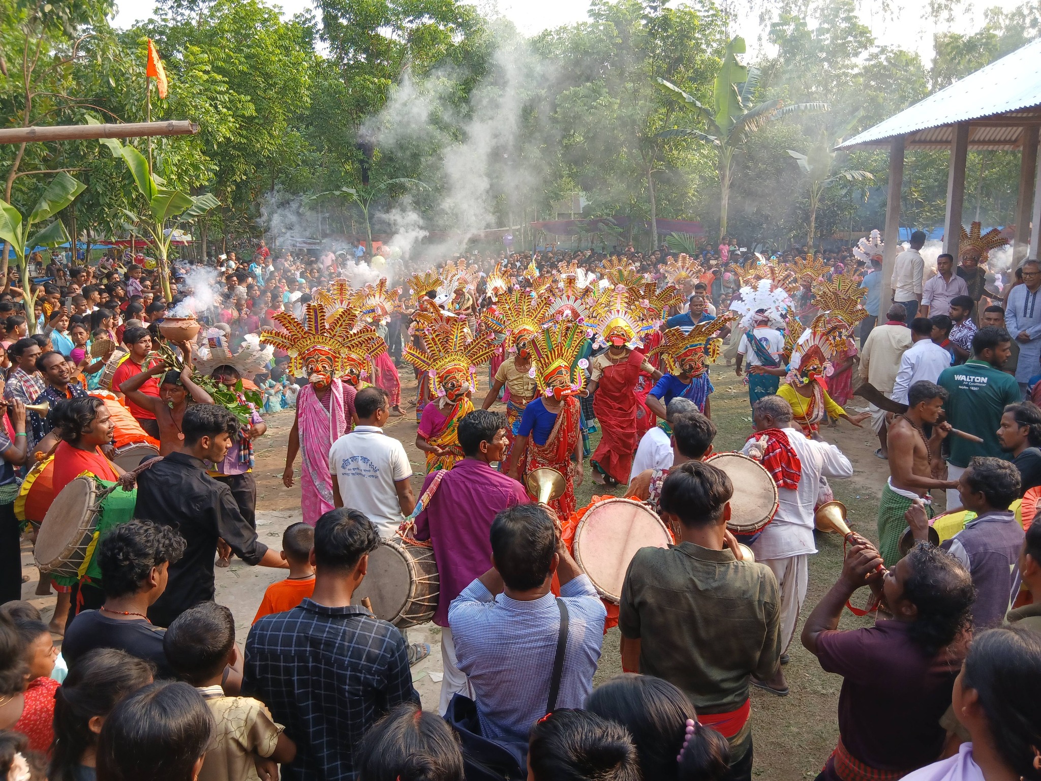 মুখোশ নৃত্যের আয়োজনকে কেন্দ্র করে সকাল থেকেই মন্দির প্রাঙ্গণে ছিল সাজ সাজ রব। দুপুর থেকে মন্দির প্রাঙ্গণে জড়ো হতে শুরু করেন বিভিন্ন জায়গা থেকে আগত নানা বয়সী নারী, পুরুষ, বয়োজ্যেষ্ঠ ব্যক্তি ও শিশুরা।